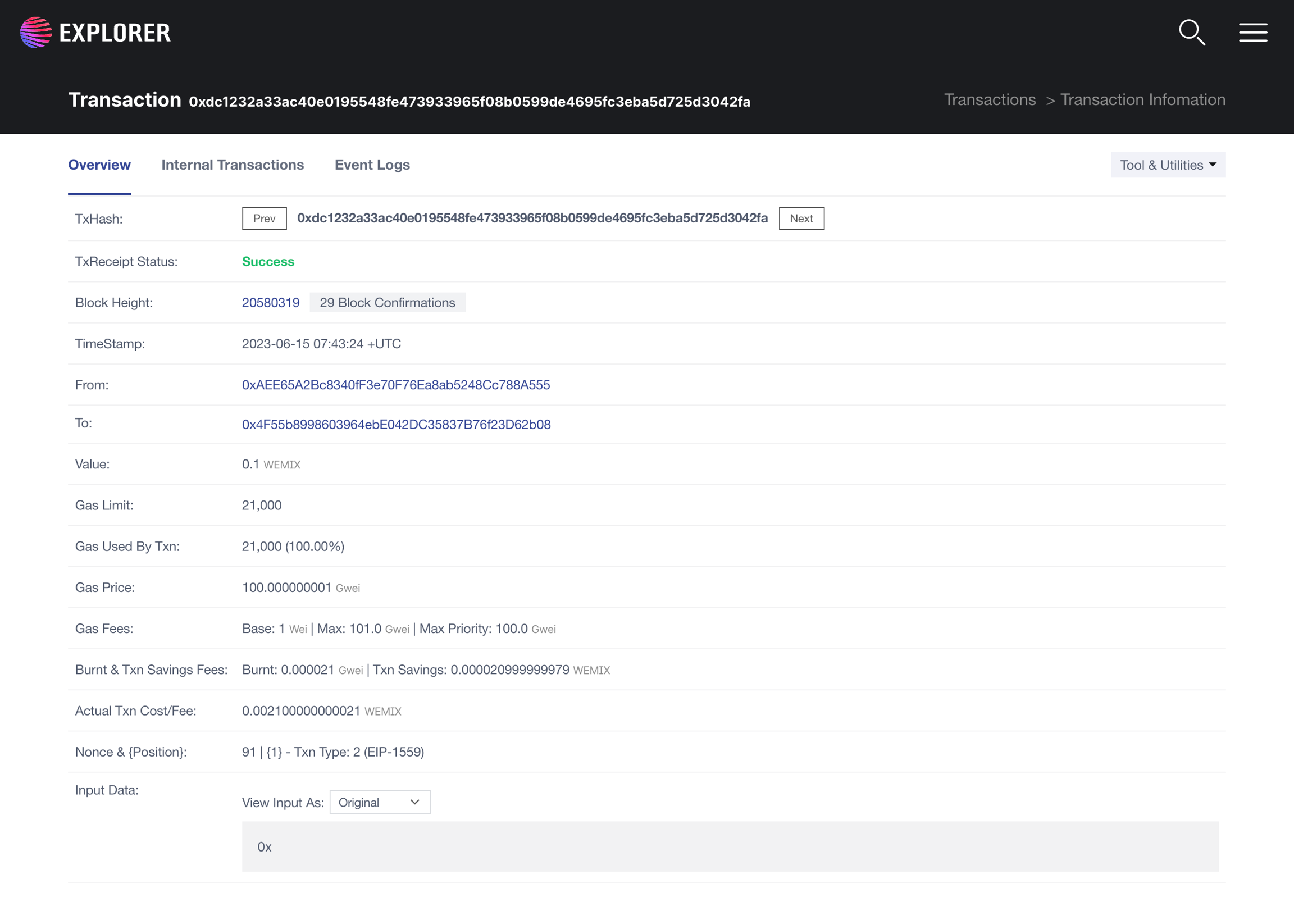TimeStamp: The first time when this transaction was appeared on the WEMIX Network.