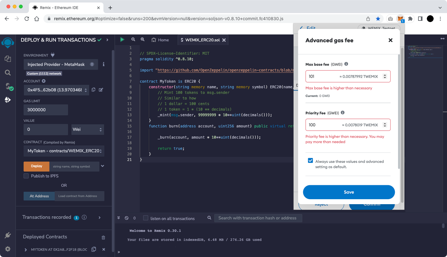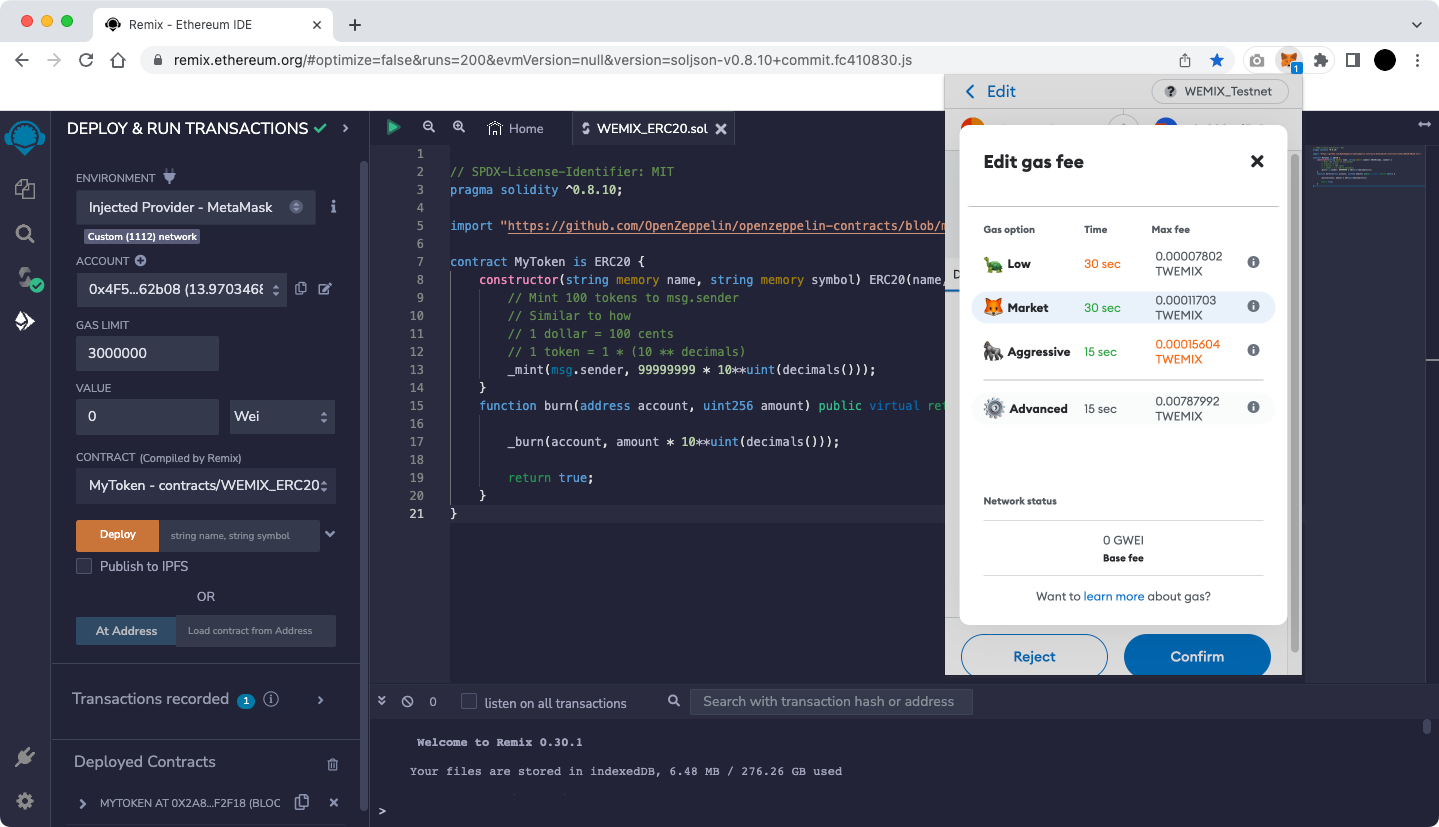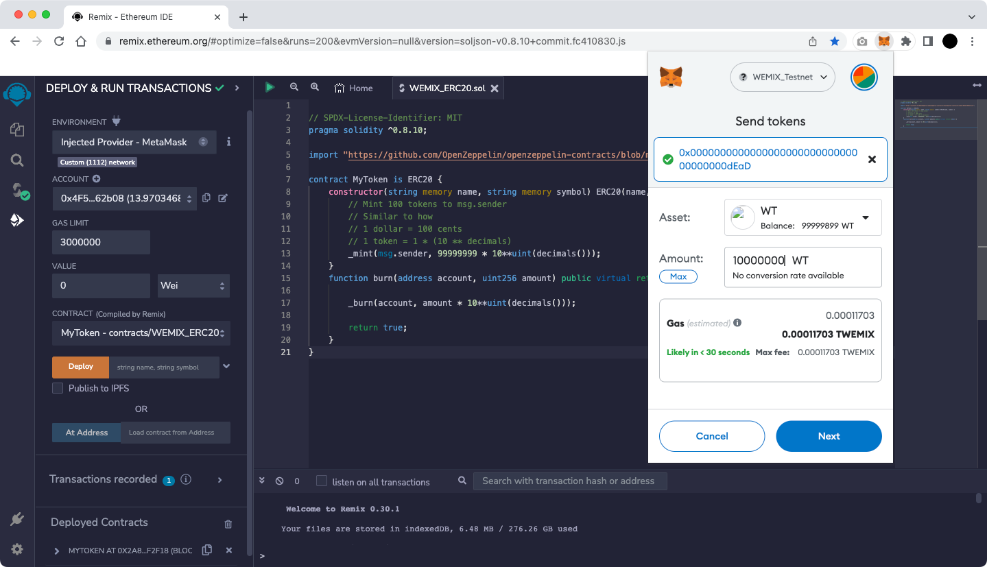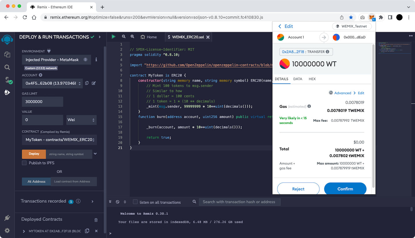 All examples are based on WEMIX3.0 Testnet.