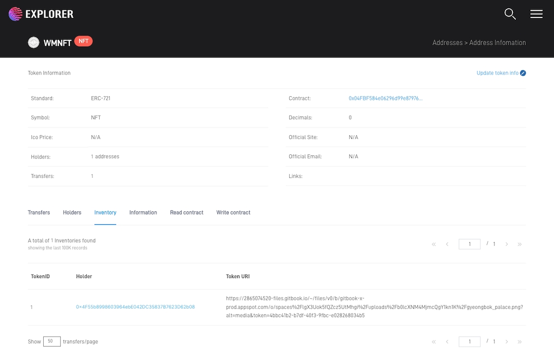 To burn a Minted ERC-721 Token, enter the issued TokenID. After then, the ERC-721 Token will be burned.