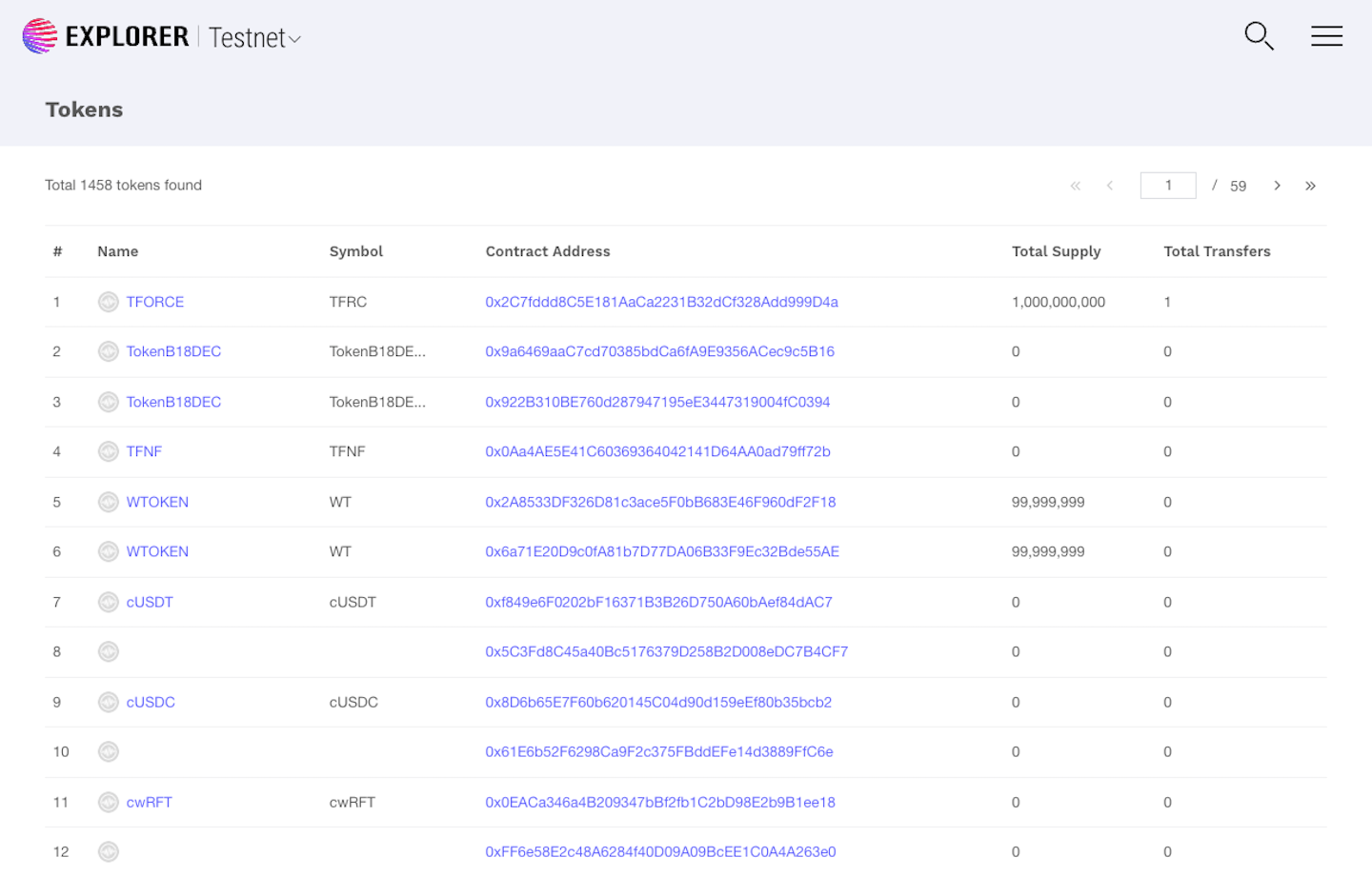 [테스트넷 익스플로러](https://explorer.test.wemix.com/) 접속 후, 'Tokens > Token List'를 선택하면 토큰조회가 가능합니다.