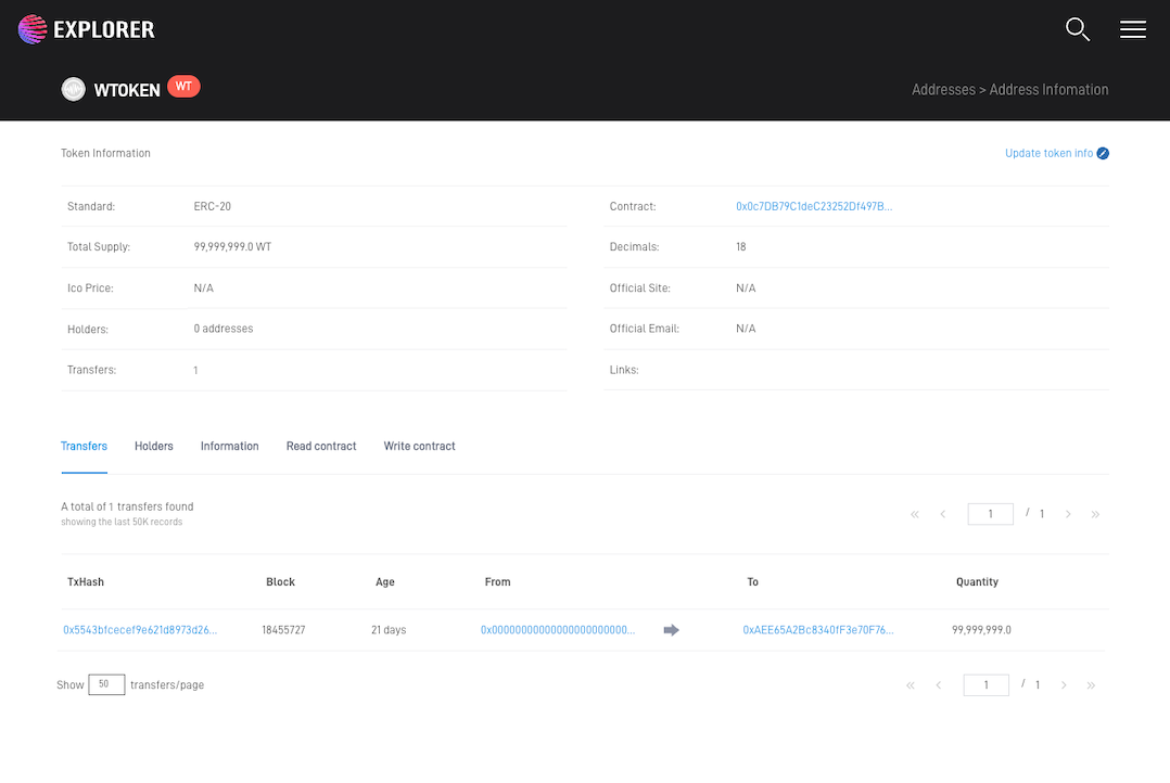아래 그림은 테스트넷 ERC-20 토큰을 확인하는 예입니다.