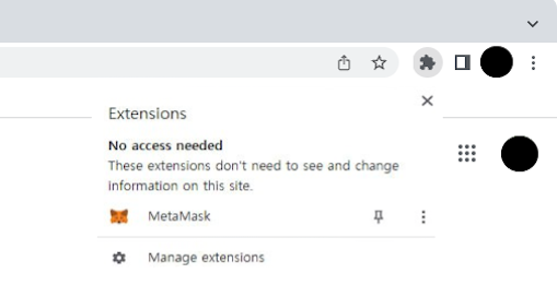 설치되어 있는 MetaMask Extensions를 실행해야 합니다. MetaMask Extensions이 설치되어 있지 않은 경우,[ 크롬 웹스토어](https://chrome.google.com/webstore/category/extensions?hl=ko)로 이동하여 MetaMask를 다운로드 받아 실행해야 합니다.